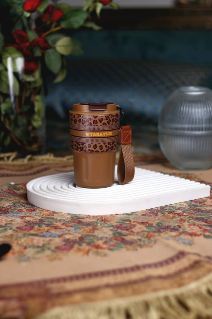 تراول ماگ سیتارایوری مدل پلنگی با خال های قهوه ایی جنس بدنه استیل ۳۰۴