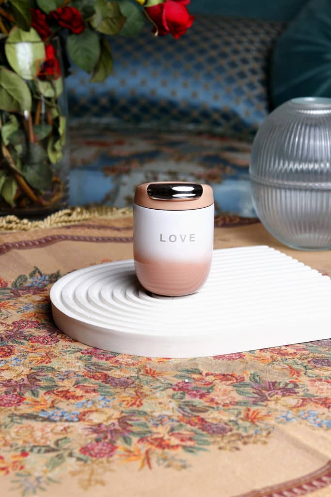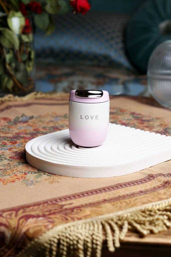 تراول ماگ با مدل لاو یکی از طرح های جذاب دارای لبی آسان نوش.